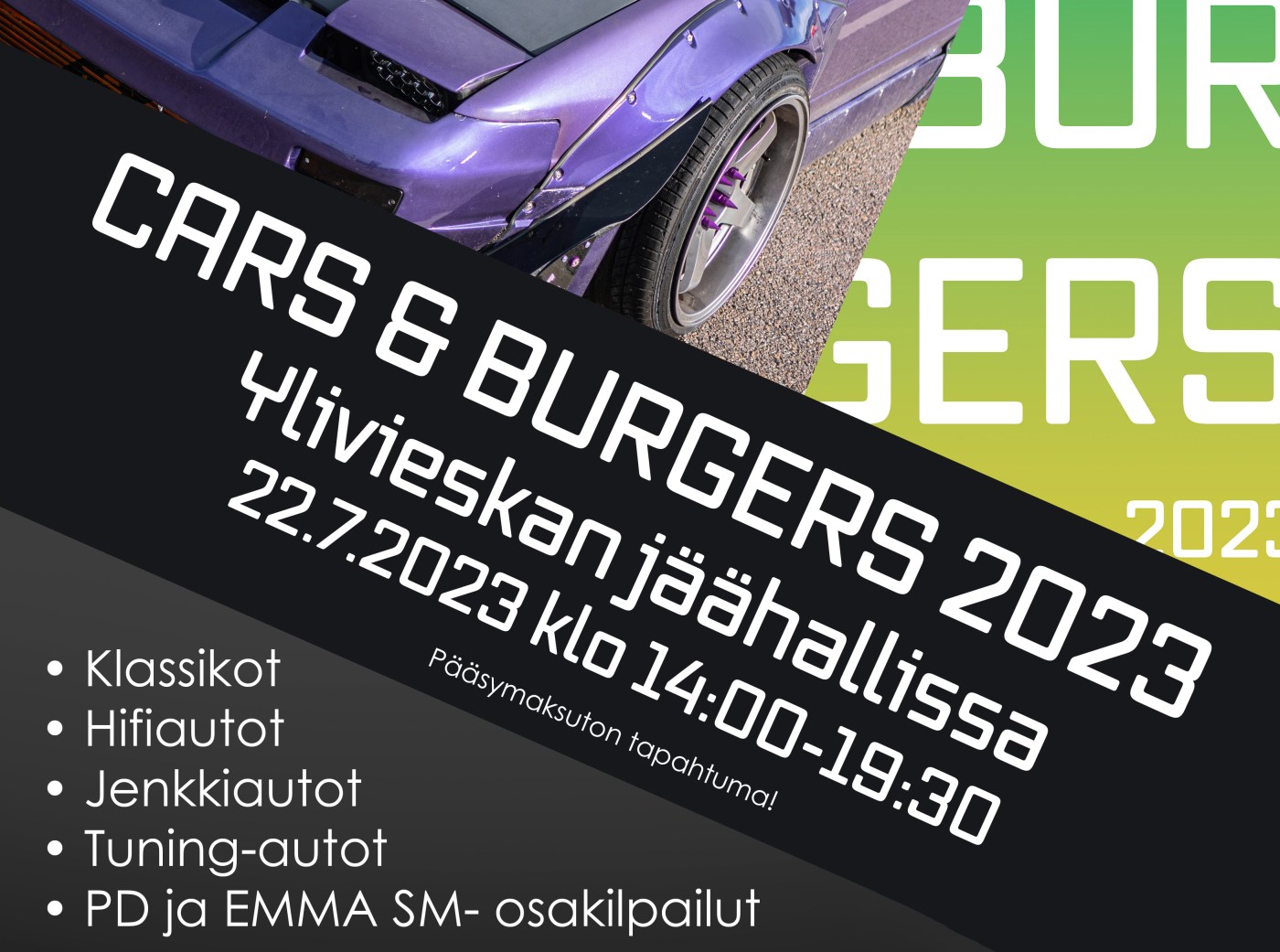 Ylivieskan Cars & Burgers on järjestetty jo vuodesta 2018 alkaen. Mistä nimi juontaa juurensa? Ympäri maailman on järjestetty ns. cars and coffee -tapaamisia, joissa superautojen omistajat tapaavat paikallisen kahvilan parkkiksella ja vertailevat kalliita autojaan. Cars & Burgers on maanläheisempi tapaaminen, jossa superauto ei ole lainkaan pakollinen varuste. Tapahtuma on yleisölle maksuton.